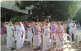 - 15th August, Programme for flag hosting was arranged on the ground of VruddhaNiketan, whole Programme was conducted by ashramvasi, Nirmalaben Adani waved the flag and addressed in brief about freedom movement, afterwords others elaborated their memories of freedom fight, sang the songs and salute the leadership of Gandhi, Nehru and other.